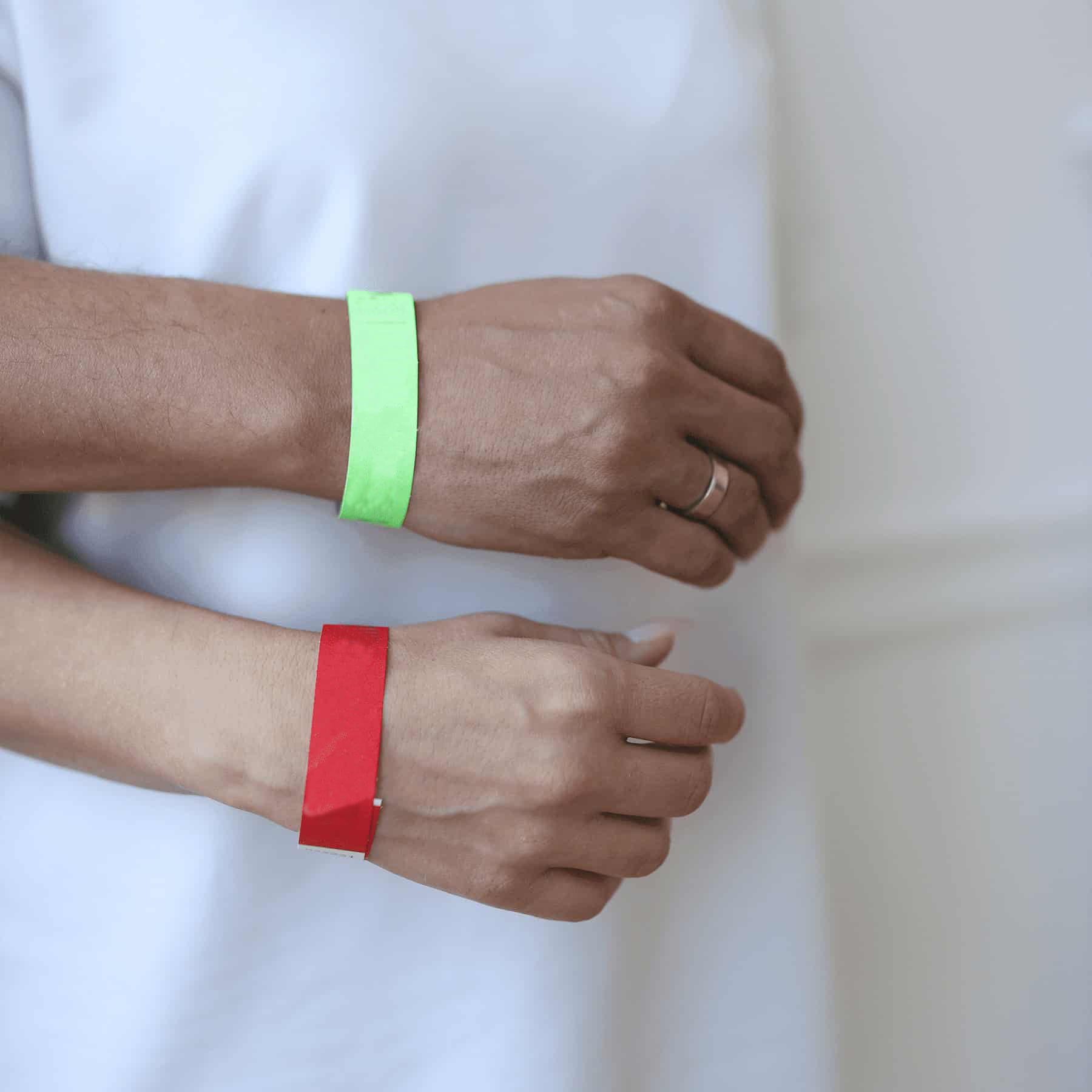 На входе каждый участник получает браслет, который показывает его статус: в отношениях или в активном поиске.